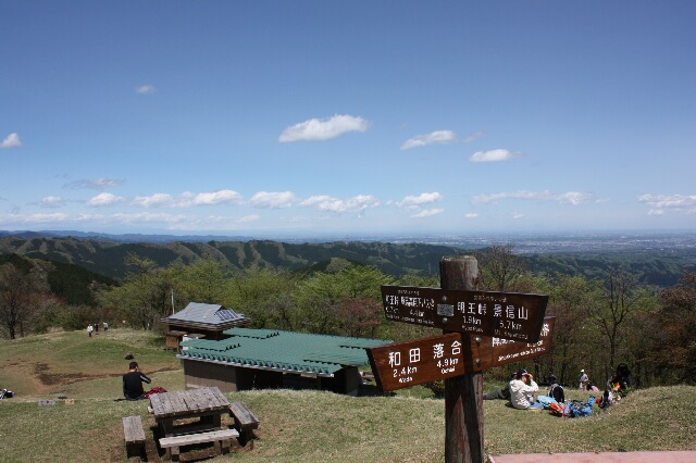 頂上付近は芝生に覆われ、食事を取るのに適しています。トイレもあります。展望は最高です。富士山はもちろんのこと、空気が澄んでいれば東京の高層ビルや横浜のランドマークタワーまで見ることができます。陣馬ノ湯方面に下れば、温泉を楽しむことも出来ます。