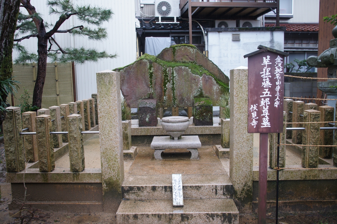 伏見寺は、金沢市内、寺町の一角にある芋掘り藤五郎ゆかりの寺。境内には、芋掘り藤五郎の墓もあります。拝観料を払うと、私一人だったのですが、お寺の若いお坊さんが芋掘り藤五郎や夫婦の像を丁寧に説明してくれました。大きくはない本堂には、あれこれ、いわれのあるものが多いので、聞いているとちょっと時間がかかります。