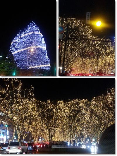 震災で電球を全国から借りた去年とは違い、今年は仙台カラー一色の光のページェント。復活です。やはりすばらしい。表参道のイルミネーションの数倍良いです。寒いですが暖かい色の光の中を散歩するのは毎年恒例です。仙台の若者はカウントダウンもここでするようです。