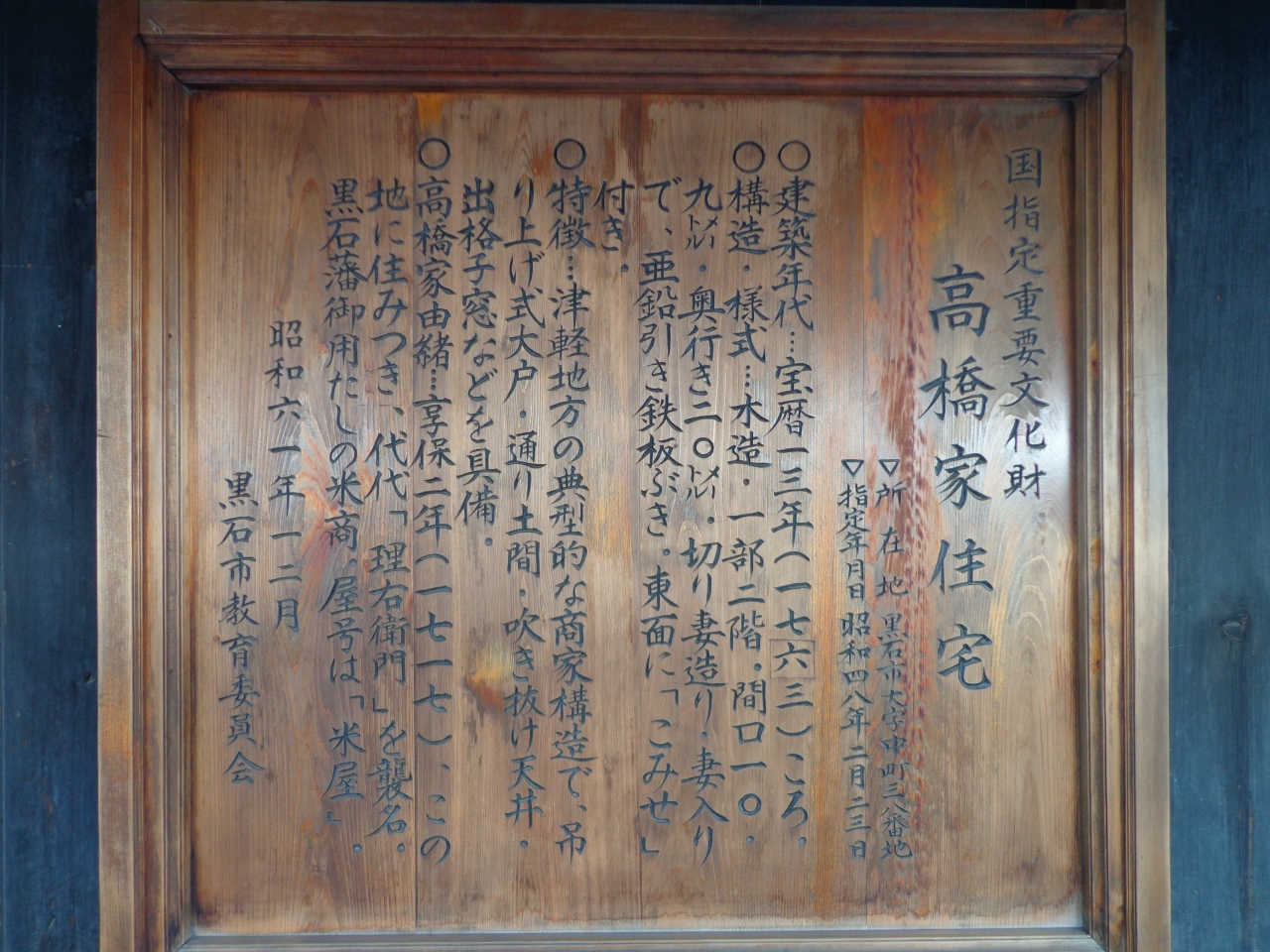 「こみせ通り」を代表する建築である、国指定重要文化財「高橋家住宅」を訪問しました。江戸時代中期の商家の風情をそのまま伝える雰囲気の中で、冬でなければ喫茶が楽しめるという粋なスポットでもあります。