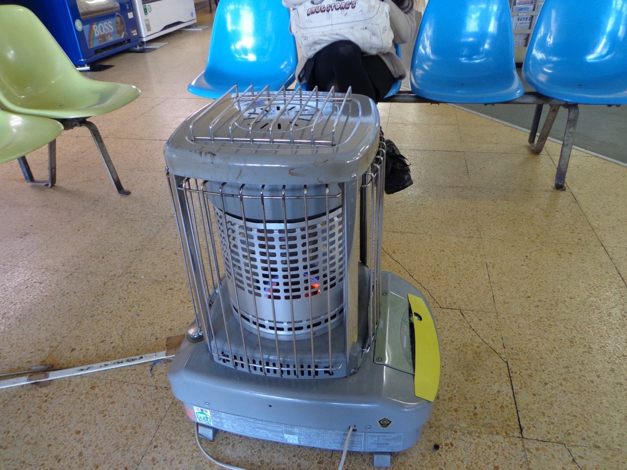 小さな駅の待合室は石油ストーブが1台しか暖房施設がありません。