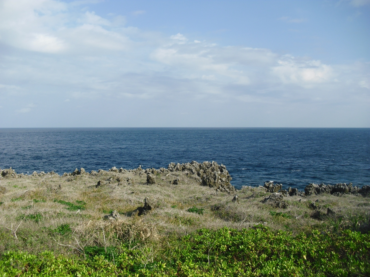 北大東島の西港から海岸沿いに北に行くと黒部岬に出ます。海岸があるというわけでもなくただ青い海と岩場だけでした。ここに行くよりも上陸記念公園方面(南側)に行ったほうが心身ともにリラックスできると思いますよ。