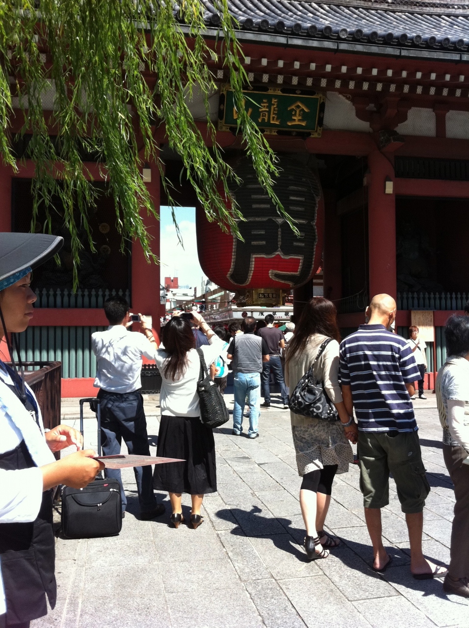 浅草といったらここ!!雷門。超有名な観光名所です。私が行ったときは平日だったせいか、そこまで込み合ってはいませんでした。入り口では多くの人が写真を撮っていました。たくさんのお土産屋さん、レストランが建ち並んでいます。食べ歩きも楽しかったです。