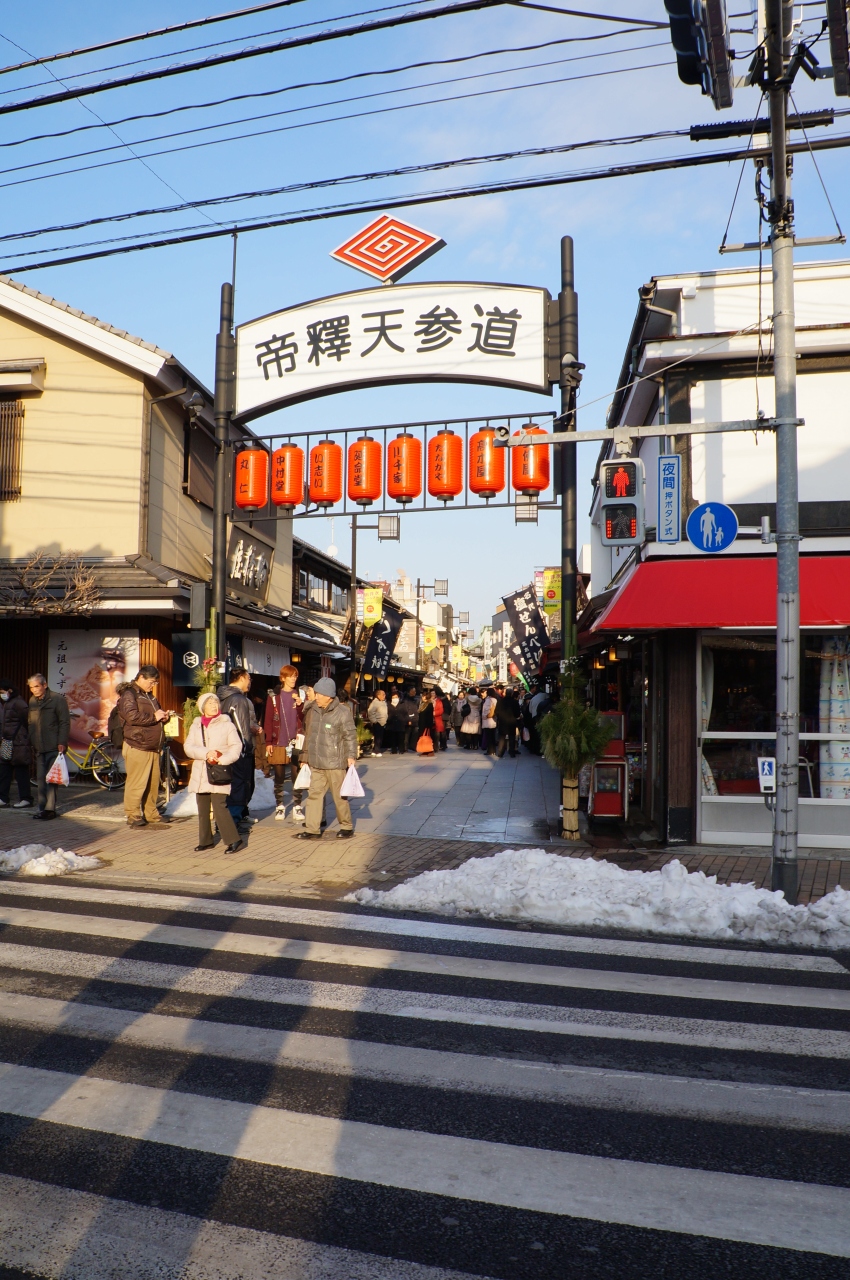 柴又駅から帝釈天までの短い距離ですが、柴又街道から先は石畳の参道になっていて、30軒ほどのお店が並んでいます。男はつらいよでお馴染みのとらやも、この参道にあった設定になっていて、実際に草団子や佃煮屋、葛餅屋や鰻屋さんなどが軒を連ねていて、下町情緒あふれる、何故かほっとするような、憩いのある雰囲気になっています。