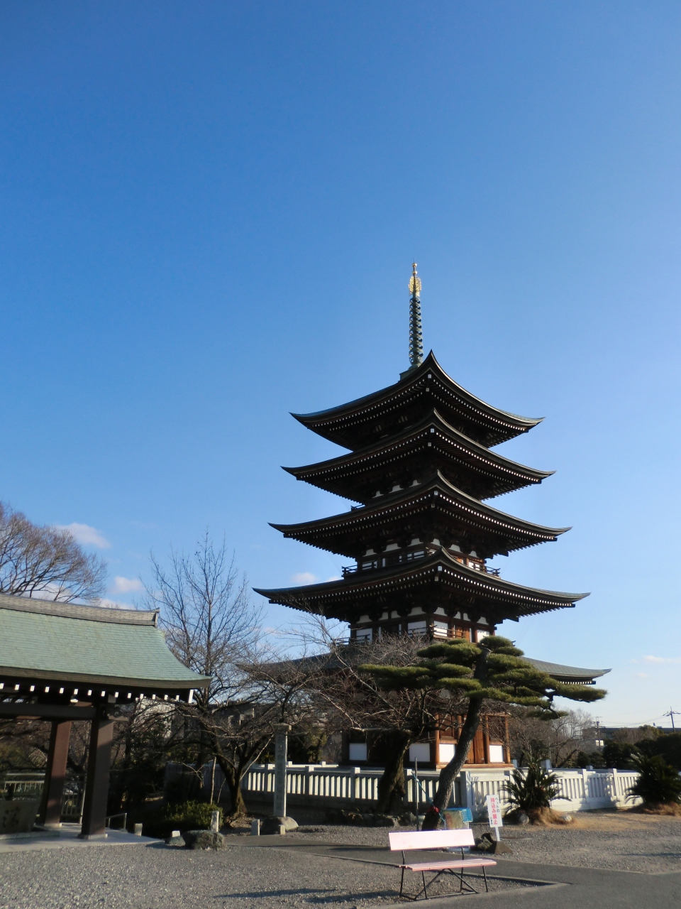 青い空に本堂、五重塔がさわやかに佇んでいました。