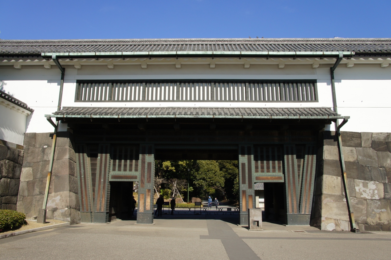 ちなみに、現在の大手門は、関東大震災では大破し、両側の石垣を築き直す大修理が行われたようです。一方で、高麗門はほぼ江戸時代の様子をとどめていて、りっぱな鉄鋲は十分に威圧感が感じられます。