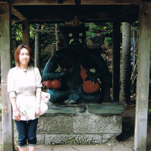 カッパなどの像や変な鬼(?)のモニュメントが飾って