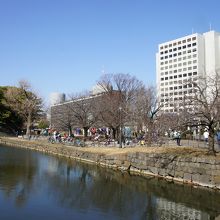皇居を走るランナーが準備体操をしたり、お昼だと近所のサラリーマンが休んでいたり
