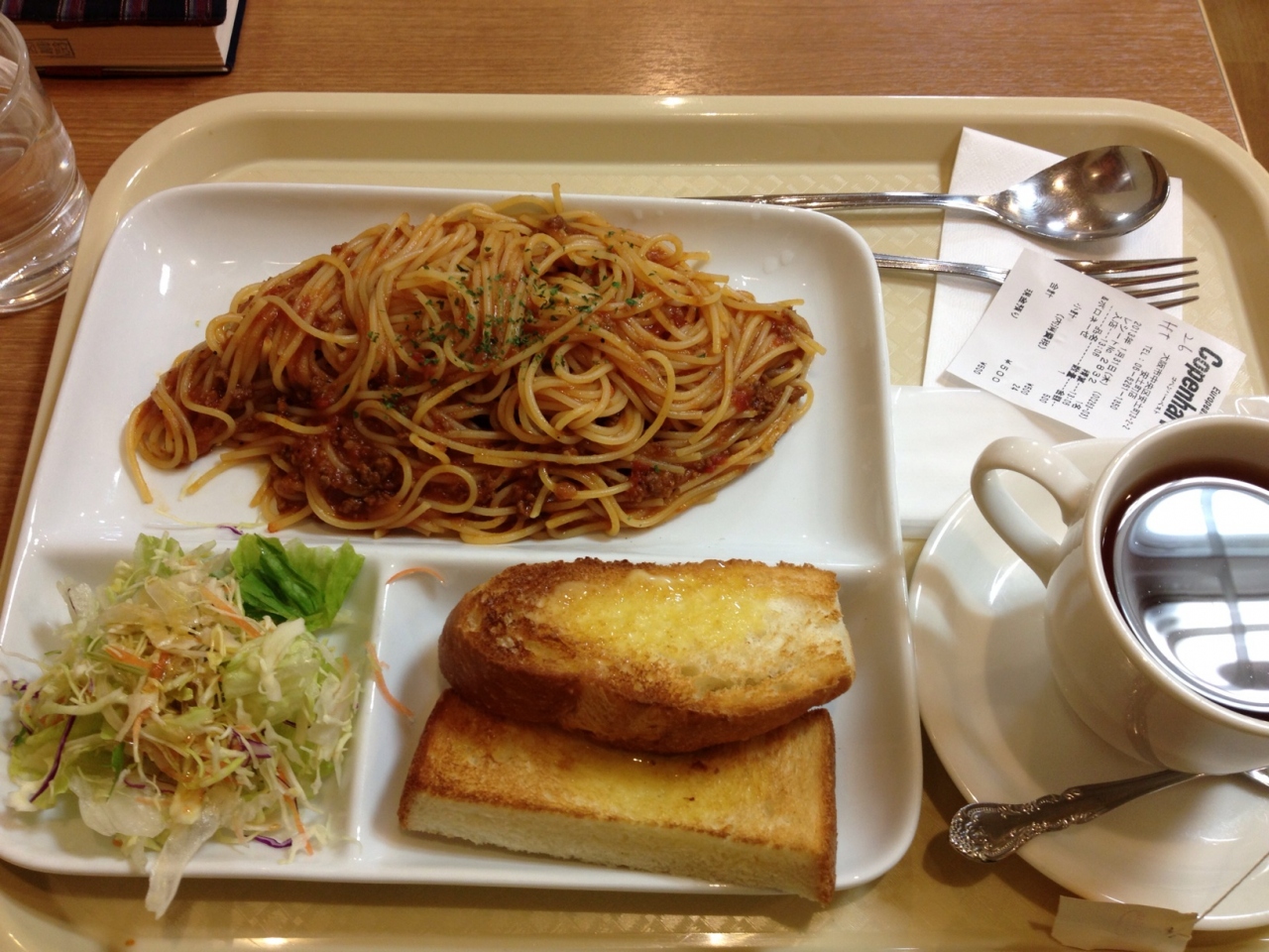 ランチタイムにブラブラしていたところ、パン屋を発見して近づいてみるとランチが色々あってしかもリーズナブルだったので入ってみました。500円のランチセットは3種類。パスタランチ、サンドイッチランチ、パンランチで、私はパスタランチを選択。プレートにサラダ、日替わりパスタ、トースト、ドリンクがついています。パスタはアルデンテで量もしっかりあって食べごたえがあります。イートインできるスペースがかなり広いし、喫煙・禁煙スペースが分かれているのでタバコを吸う人も利用できます。ゆっくりできるのでお勧め。