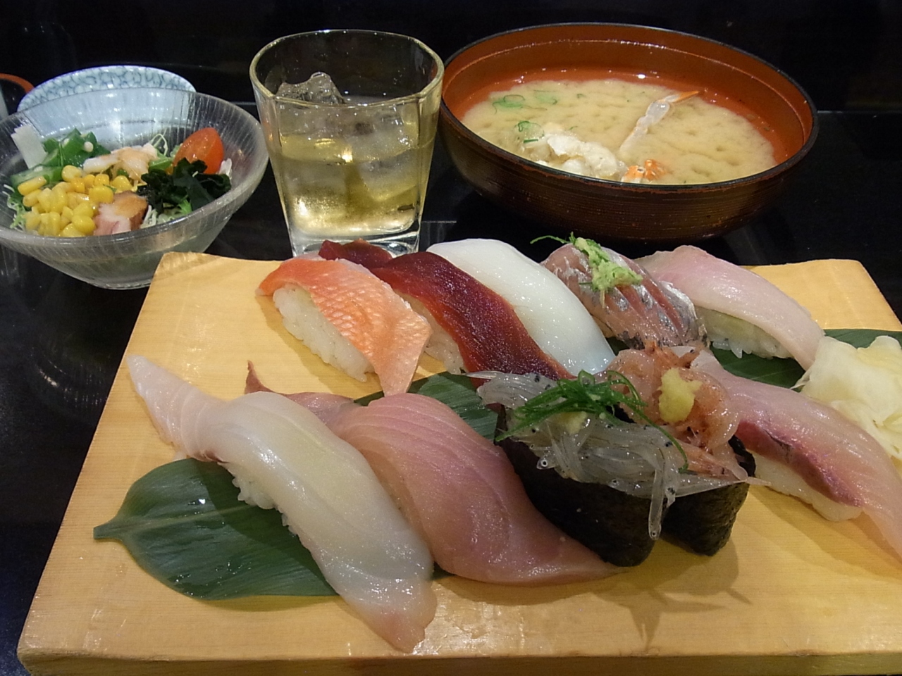 (沼津の地魚10貫、サラダ、お椀付で2,300円)