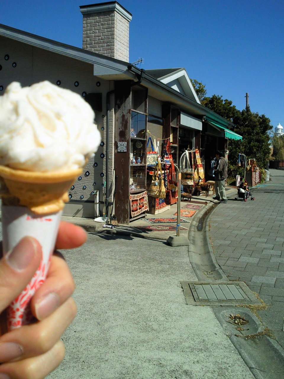 途中、トルコ記念館、トルコアイスのお店があります。天気がいいと、ところどころ見える海景色もきれいです。その先に、見えてくるのが、樫野崎灯台です。灯台周りは遊歩道となっていて、その周りに水仙が咲いており、まるで風景画に出てきそうな光景です。