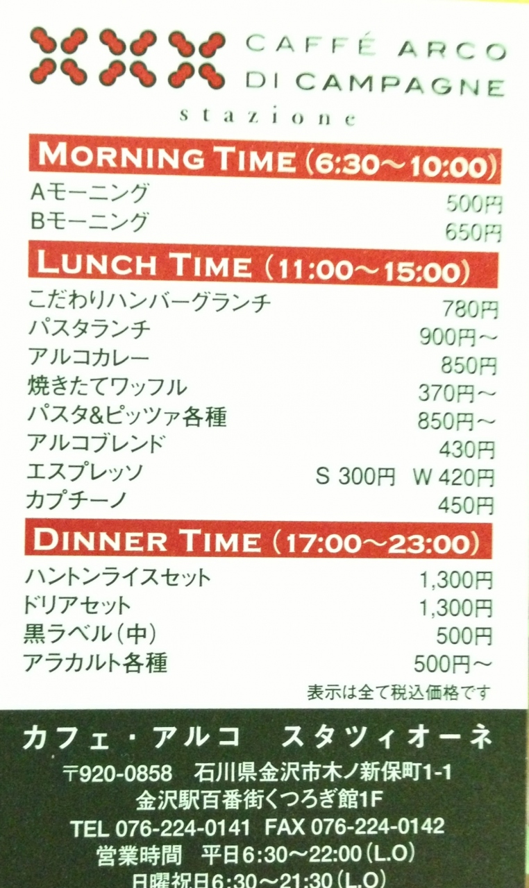 金沢駅、電車待ちにちょうど良い。駅前ホテルで朝食付でなければモーニングでもいかが