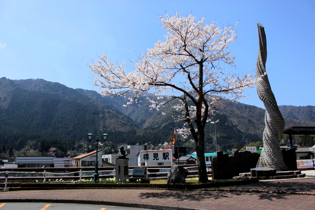 樽見駅が近づくにつれ、道路が渋滞しているのが見えました。