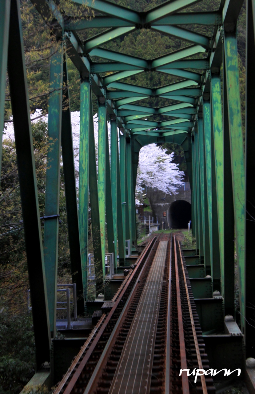 戻る車両最後尾に陣取って、夕暮れの桜沿線の景色を楽しみました。