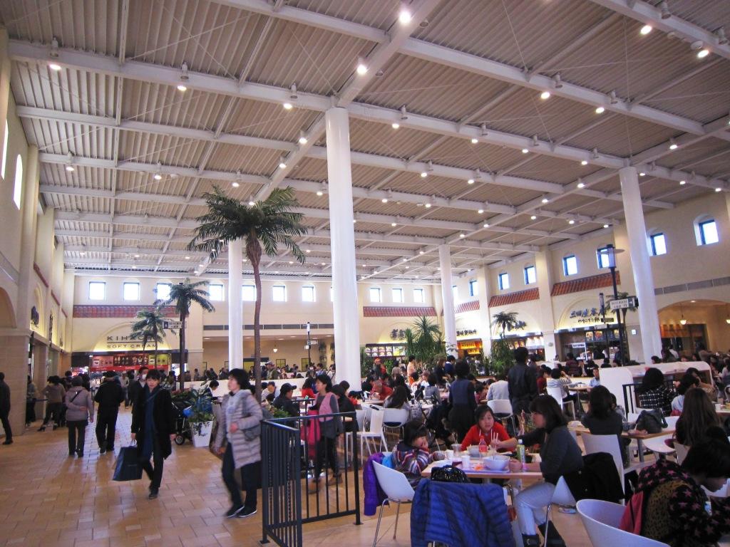 モール中央部にあるフードコートは昼食時にはお客さんが殺到し席を確保するのが大変なので、利用するときは前後に時間をズラした方がいいかもしれません。