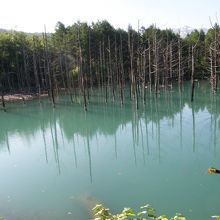 美瑛から白金温泉へ行く途中にある美瑛川の砂防工事によってできた池です。
