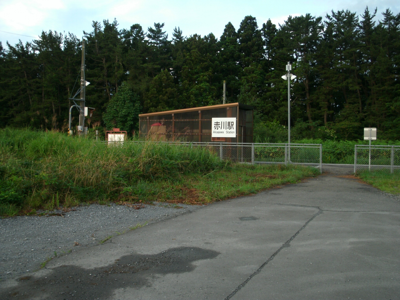 下北半島にある大湊線の駅です。周辺はむつ市の市街地ではありますが、その広々とした景観は北海道を思わせるものがあります。国道279号から少し離れたところに駅がありますが、駅前の県道も交通量が多くなっています。