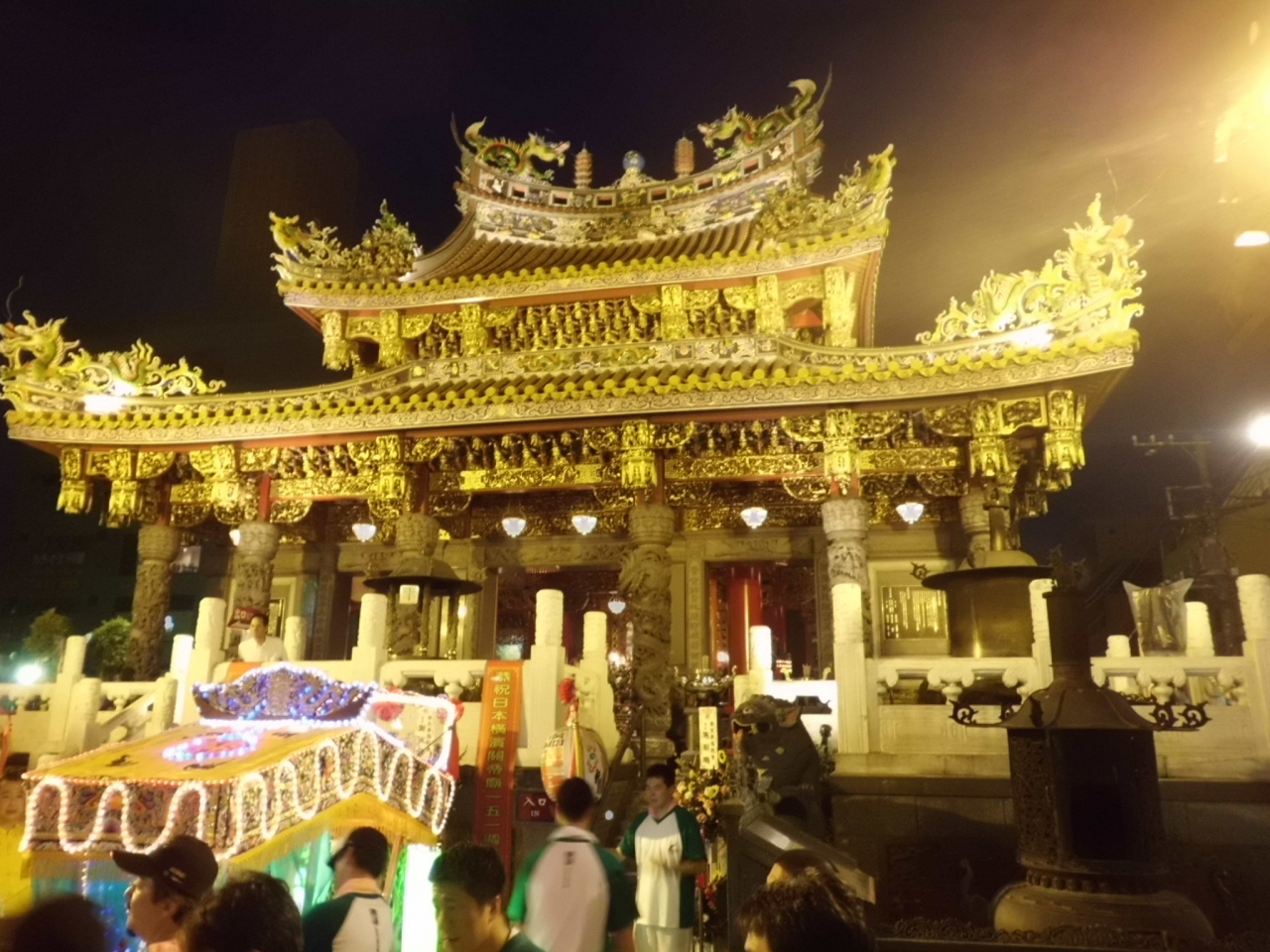 お盆で何やらお祭りがされていました。調べてみたら、關羽様をお乗せした神輿を中心に、獅子舞や龍舞、中国舞踊・京劇など中国伝統芸能のパフォーマンスも加わった巡行パレードで聖誕のお祝いをしていたようです。後ろについていったらこちらに着きました。爆竹がすごくて驚きました。