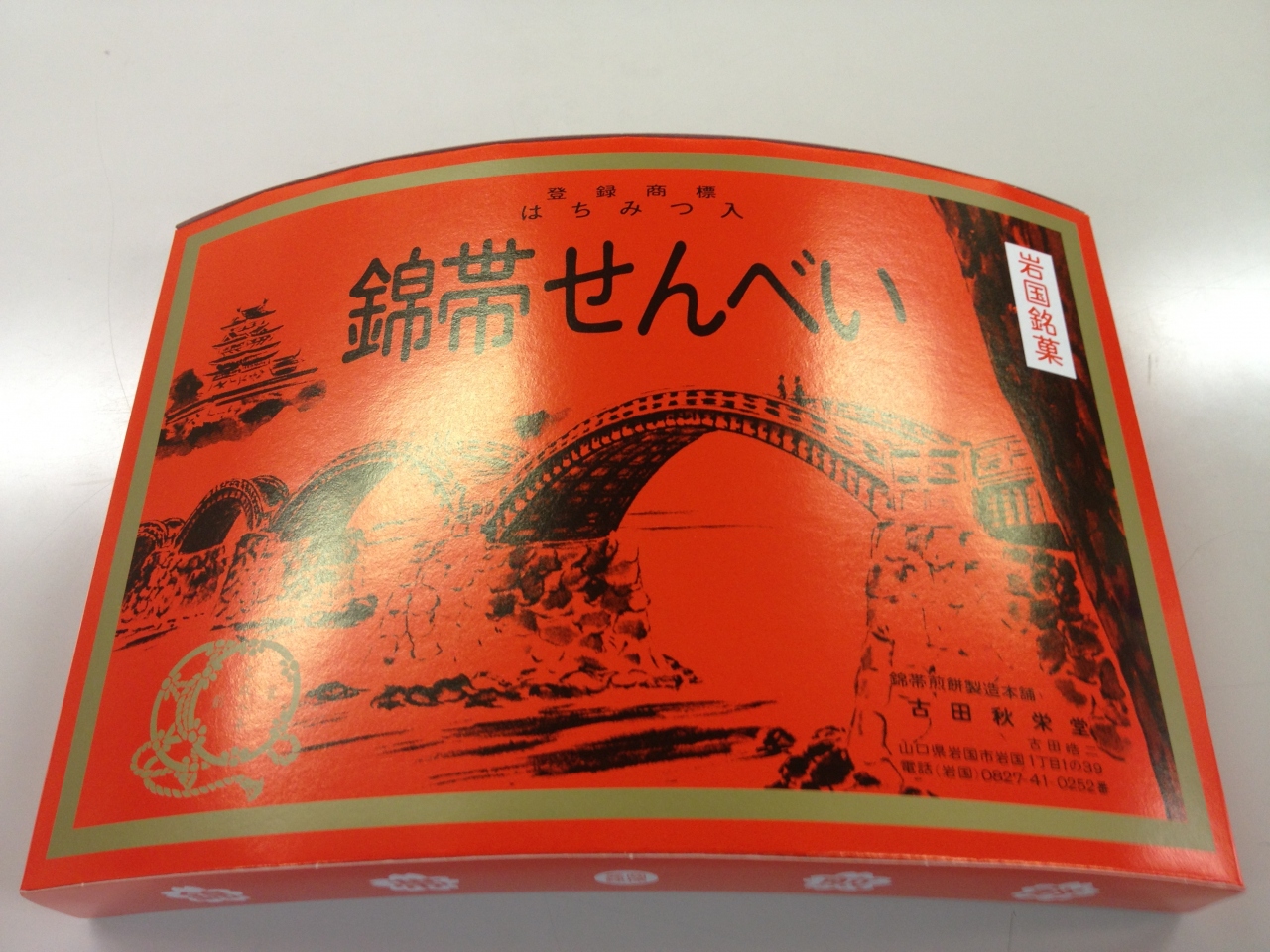 古田秋栄堂 (フルタシュウエイドウ)は、岩国の名橋『錦帯橋』から歩いて3分の所にあります。錦帯橋のバス停からはすぐの所にあります。歩いてすぐです。小さくてかわいいお店です。おせんべいは、橋をイメージしていますし、パッケージも橋の形です。ぜひ、