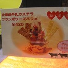 有名な方のお店のようです。空港全体の価格からすると少し高い気もします。私はもっちりしっとりが好きなので、あまり好みではありませんでしたが、甘過ぎ上品な味です。その場で牛乳とセットで味わえたり、パフェ風にしてもらうこともできます。