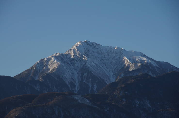 駅を出るとすぐ目の前に甲斐駒ヶ岳が大きく見えます。小海線との乗り換えで駅を利用しましたが、改札を出ると待合の椅子があり、ストーブがあって暖かいです。この横に立ち喰いそば屋があるのですが、なかなかおいしくてお勧めです。