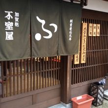 ひがし茶屋街の突き当たりにあります。「ふ」ののれんが目立つお店。