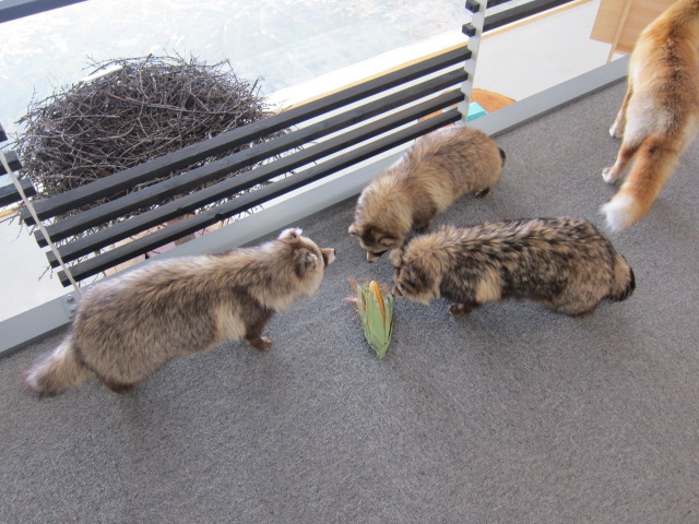 倶知安周辺にいる動物の剥製や資料、きのこ類の実物?ディスプレイ、そして