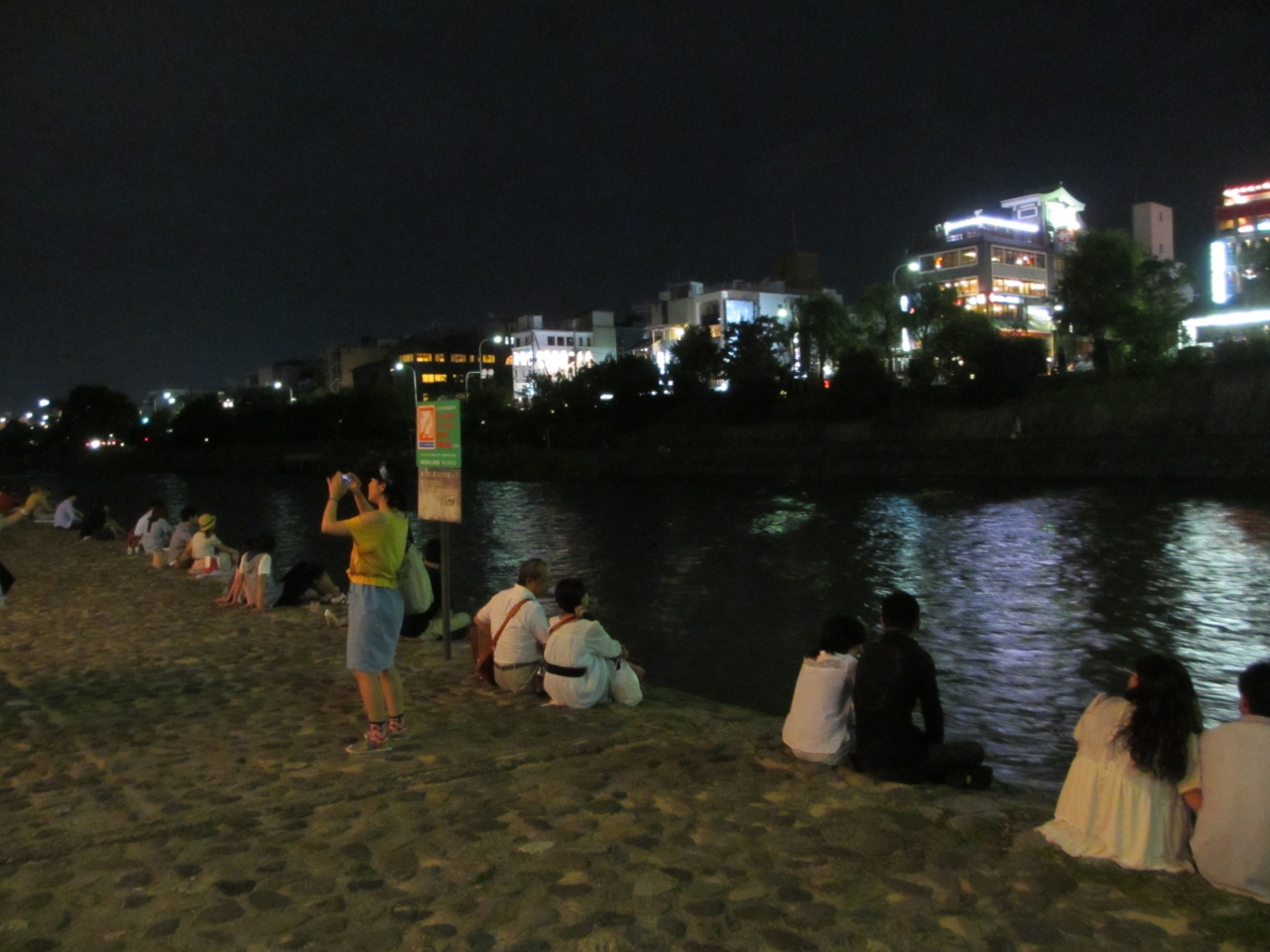 京都市内を縦に走る川で、河川敷を歩くととても気持ちいいです。昼も夜も人がたくさんいて、観光客だけではなく、地元の人も多いです。週末だったためか、夜には、パフォーマンスを披露している人もいて、昼間より賑やかでした。
