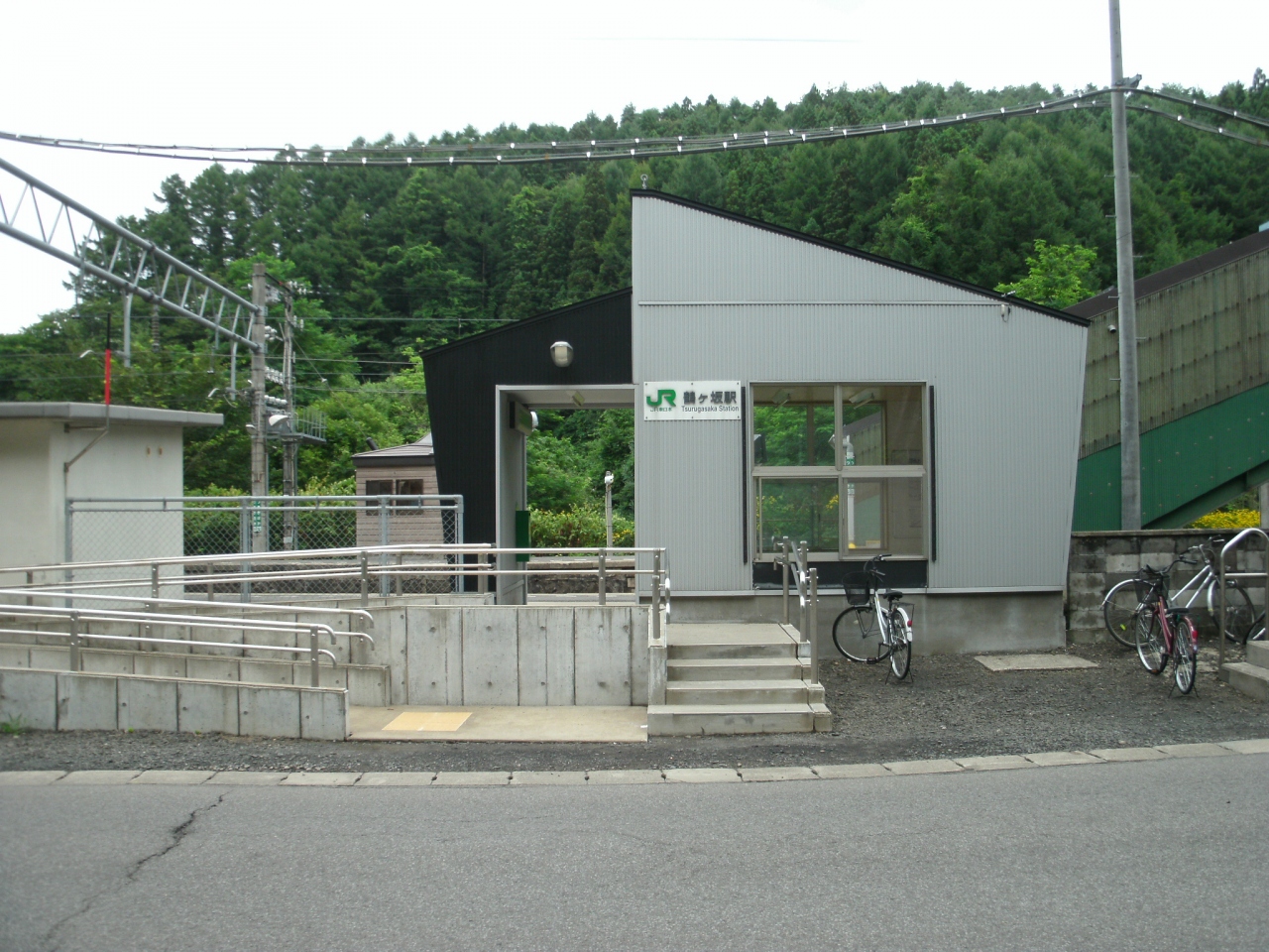 青森から乗車すると、浪岡に向かって山を越えますが、その区間にある小さい無人駅です。駅舎は小さくて新しいものになっており、待合室として使われています。周囲は紅葉や新緑の季節を中心に車窓が美しいところです。