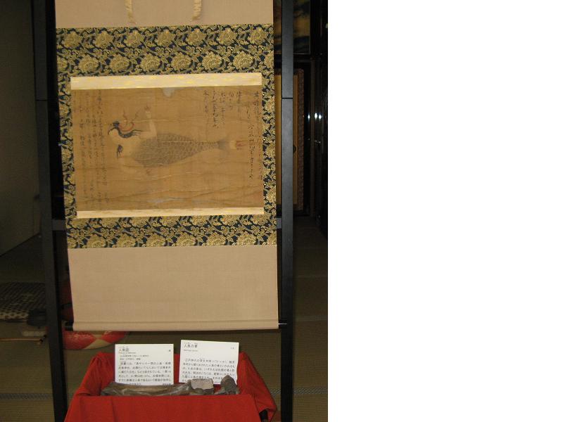 「龍宮寺」は、地下鉄「祇園町駅(2番出口)」から徒歩1分、大博通り沿い、福岡大仏の“東長寺”の真向かいにあります。このお寺は、当初は袖の湊の海辺にあり浮御堂と称していたが、貞応元年(1222年)に海中より人魚が出現した際に国家長久の瑞兆と占われ、その人魚を寺内に埋葬したことにちなんで寺名を「龍宮寺」と改称したそうです。ここには、人魚の骨が残されているのですが、通常は非公開で見ることが出来ないところ、訪れたときが“福岡オクトーバーフェスト2012”で公開していたため、見ることが出来ました。人魚の骨は、端っこが大人のこぶし大ぐらいで、長さ約30cmで思ったより大きなものでした。添付写真で“人魚の掛け軸”の下に写っているのが“人魚の骨”です。