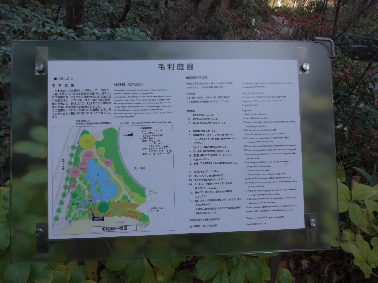 六本木ヒルズのショップやレストランがあるヒルサイドの東側にある毛利庭園は、毛利秀元の大名屋敷の庭園をそのまま復元したもの、庭園は回遊式日本庭園で池や滝、川のせせらぎが流れるコンクリートジャングルの中の本格的なオアシスです。
