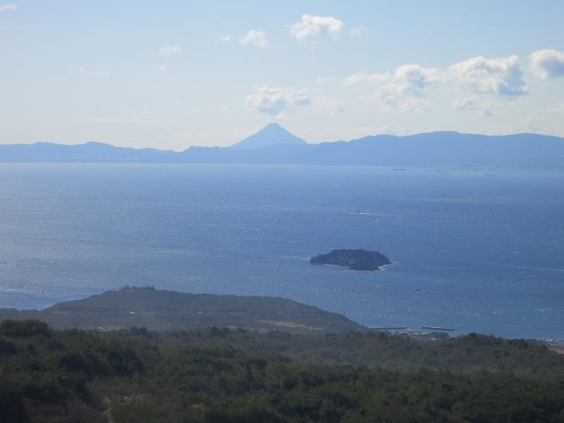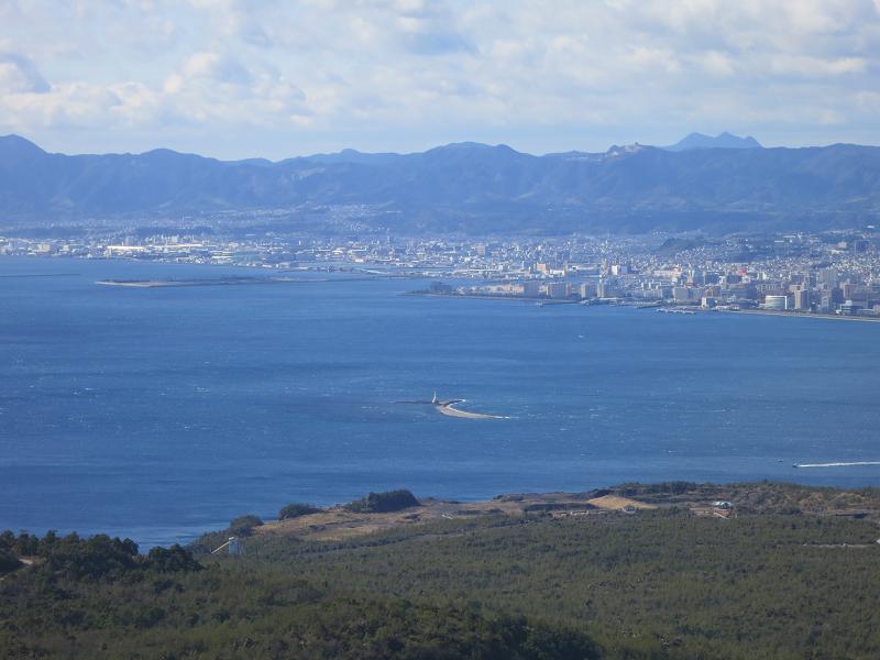 展望台に上がるとかなり強い風! でも空気が澄んでいて、開聞岳のシルエットがきれいに見えました!