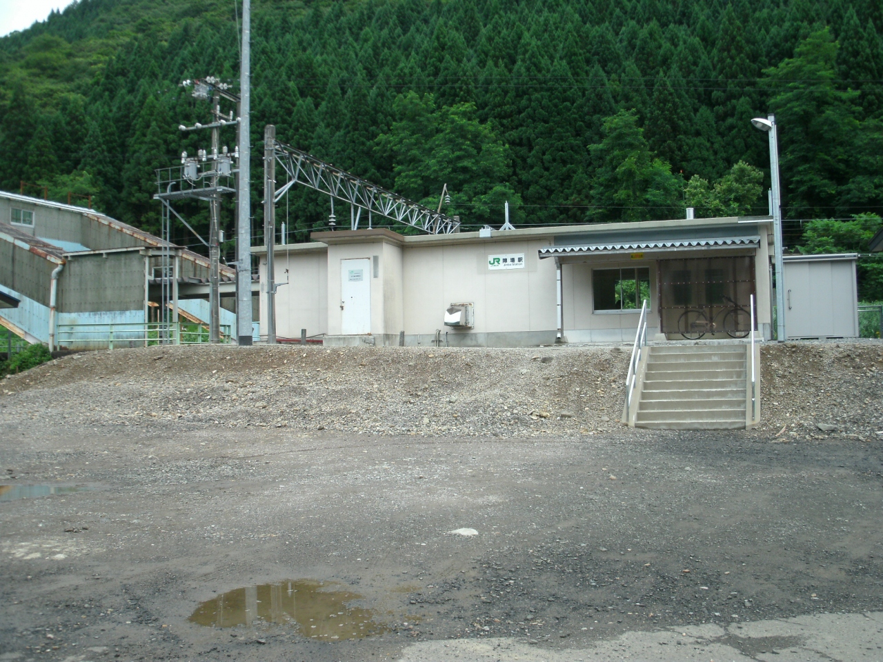 かつてこの区間をSLが走っていた時代から、難所として知られた矢立峠。その秋田県側の入口がこの駅です。県境付近で人家も少なく、山が駅に迫ってきます。駅は駅前も構内も広く、本線らしい堂々とした駅になっています。