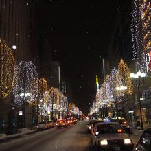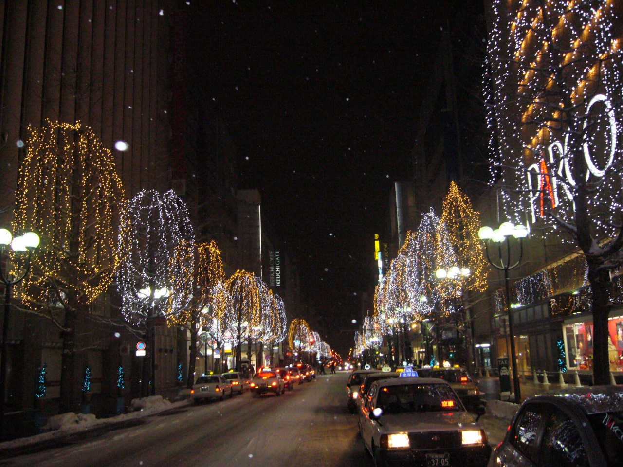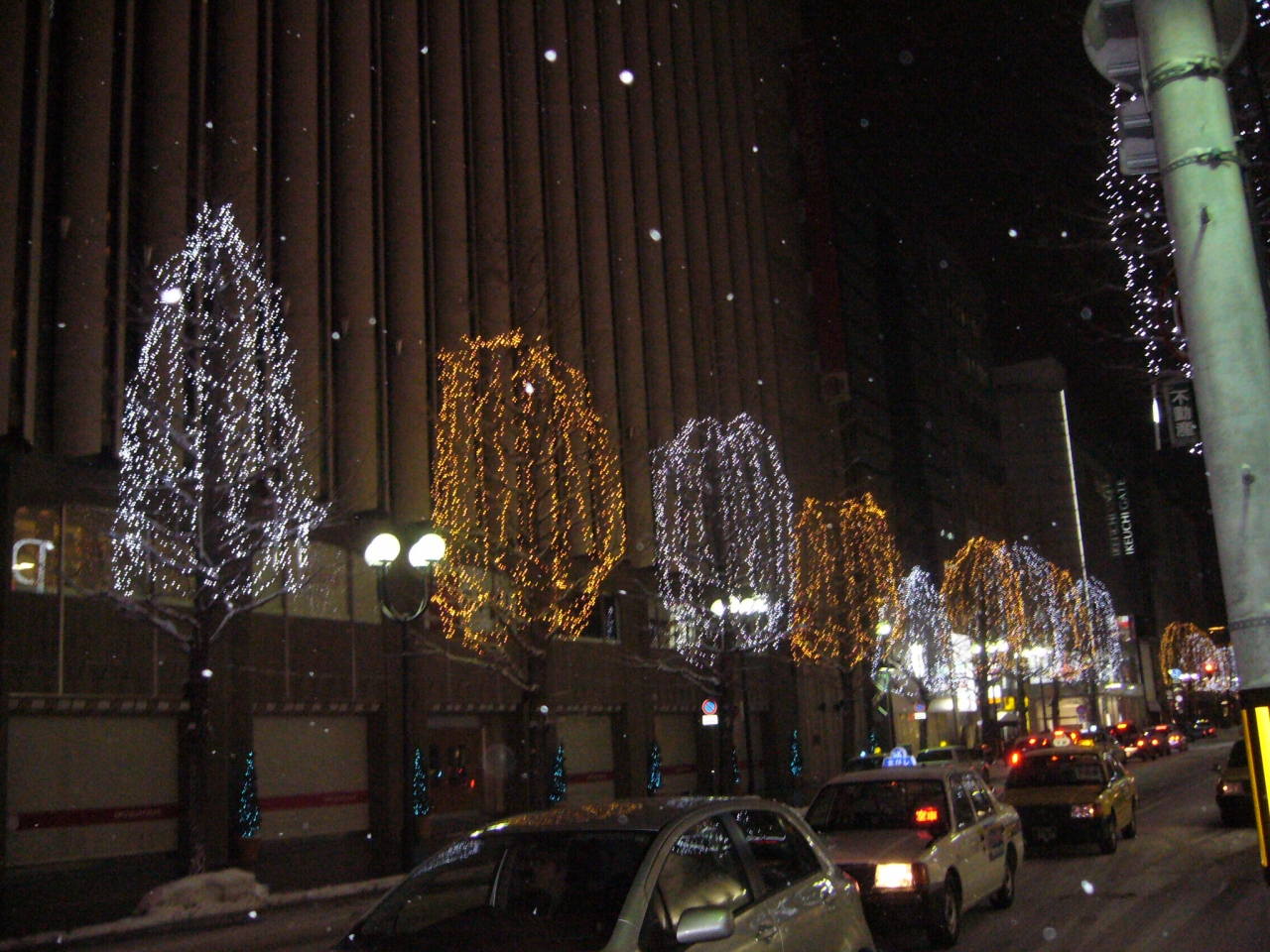 クリスマスでもないのに、夜はライトアップされるのですね。大通りからすすきのに向かって歩いていると町は通りに沿って、イルミネーションがとてもきれいです。雪の降り積もった町にとてもロマンチックで感激しました。
