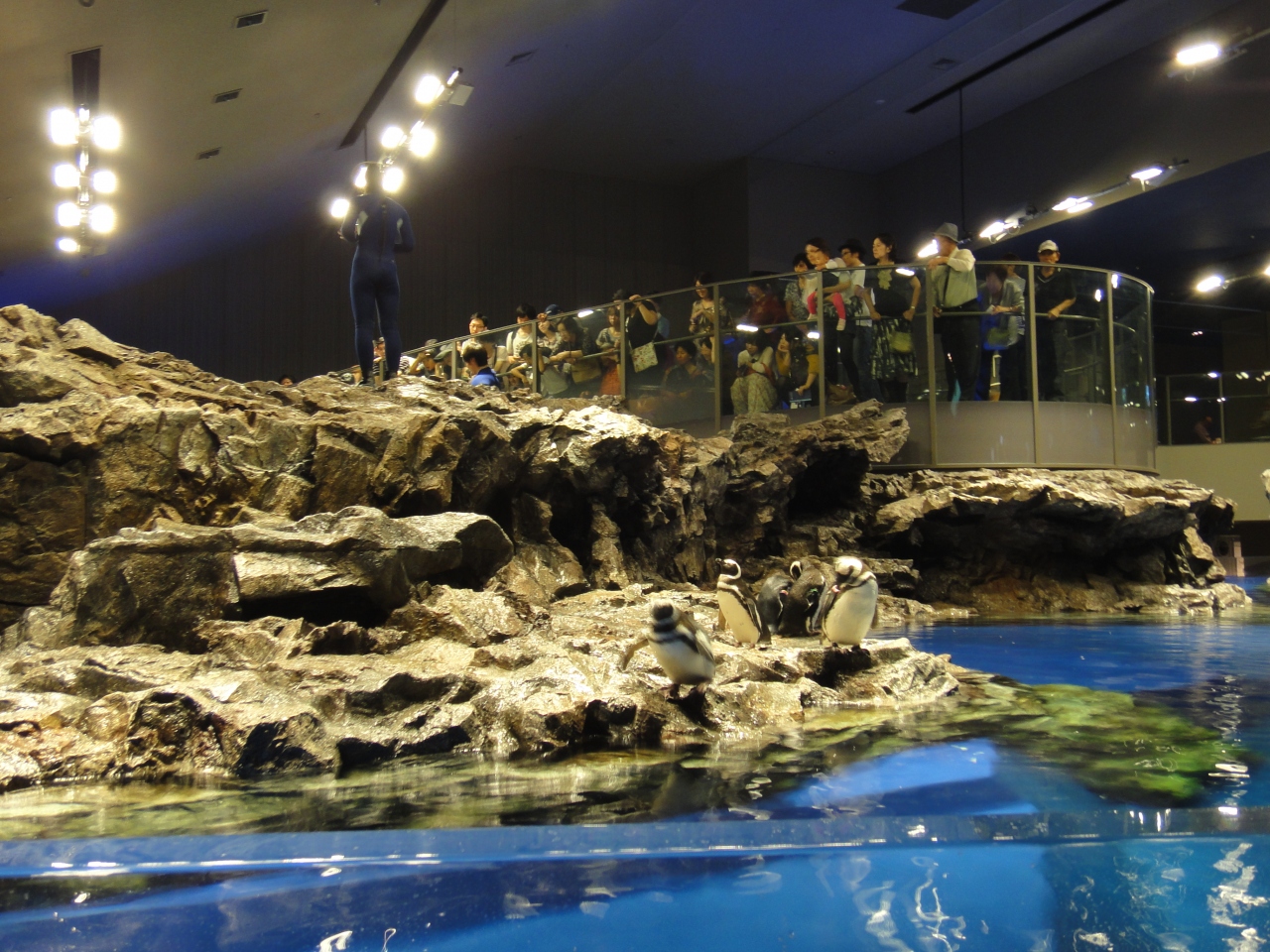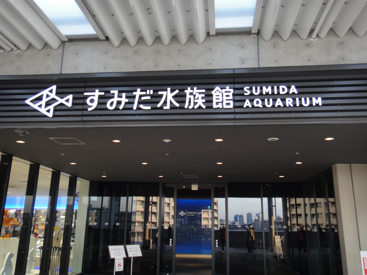 東京スカイツリーにある「すみだ水族館」に行きました。ワンフロアーの小さな水族館ですが、ペンギンが泳いでいました。館内に売店があって、ドリンクなどを売ってました。階段状のベンチがあって、座って飲食ができます。