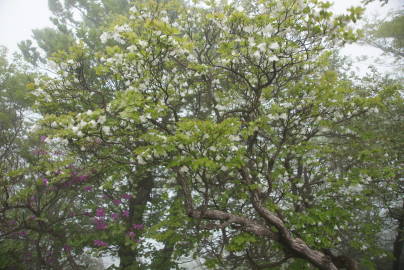 シロヤシオの咲く春がとてもきれいでお勧めです。山頂近くはシロヤシオの白色とともに紫色したツツジが咲き、また新緑のブナの大木とで大変カラフルです。この時期はガスが出易く幻想的な景色を見ることができます。