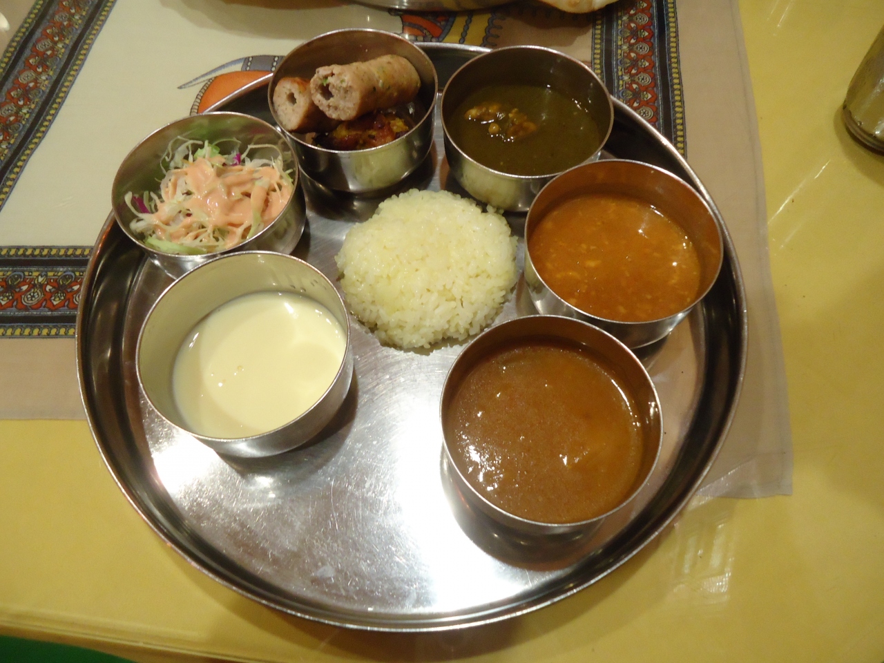 大阪駅前第二ビルにあるインド料理屋さんです。土曜日に梅田に用事があったので三年ぶりに行ってきました。インドランチにしました。三種類のルーにサラダ、タンドリーチキン、ご飯と巨大ナンがあり最後にチャイかラッシーを選べます。価格が900円で かなりお腹がいっぱいでお得でした。