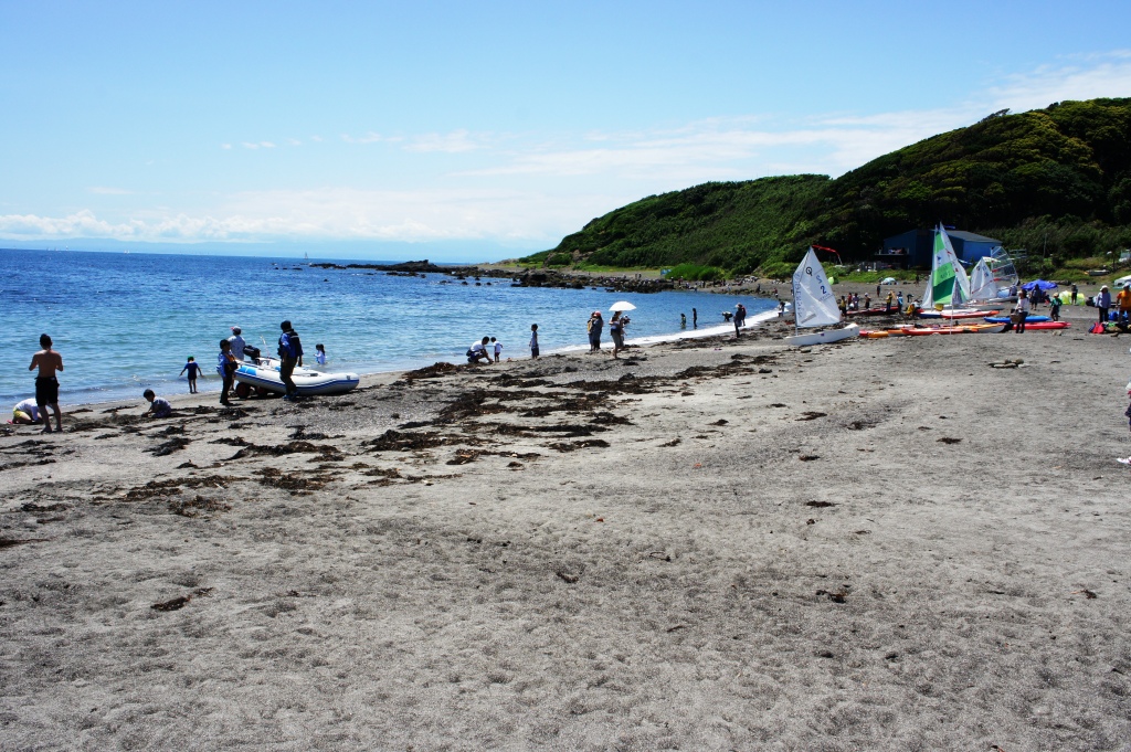 首都圏のマリンスポーツのメッカ、三浦半島の西岸にある和田長浜海岸は、ビーチ遊びに磯遊びが一緒に体験できるとっても楽しい海岸です。横須賀市と三浦市にまたがっていて、三浦半島でもかなり南に位置するためか、水質はなかなかいいです。砂の目も細かくて素足で歩くと気持ちいい。北側は荒々しい磯づたいがハイキングコースになっている荒崎シーサイドコース。ちょっとした冒険も楽しめます。ただし、歩くときは夏場ならマリンブーツがほしいところです。