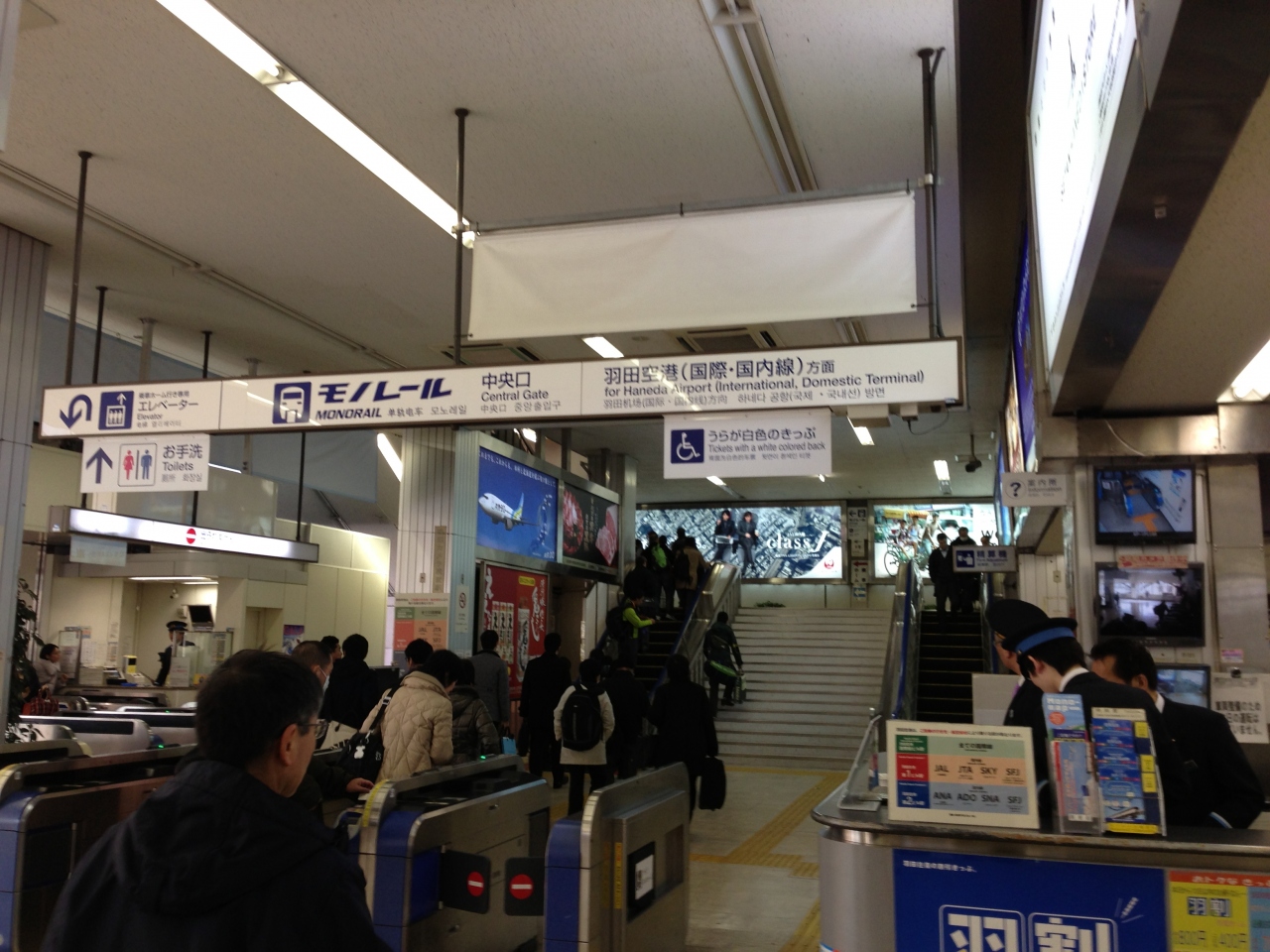 モノレールが浜松町駅に到着後、まずは片側の扉が開いて降車し、約1分後に降車の扉が閉まって乗車側の扉が開くこととなります。