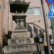 「築榊講常夜燈」は、阪急京都線、東向日駅下車、西側出口より南西へ徒歩1分のところにあります。 天保13年(1842年)に伊勢参りの講の一つである築榊講(つきさかこう)の人々によって建てられた灯籠で、向日市指定文化財、民俗文化財にしていされています。高さは約5mもありそうな、御影石作りの立派な四角形石燈篭で、側面に横方向に“築榊講”と刻まれています。大きなものですが、ビルの合間に埋まるように立っていますので見落とさないようにして下さい。