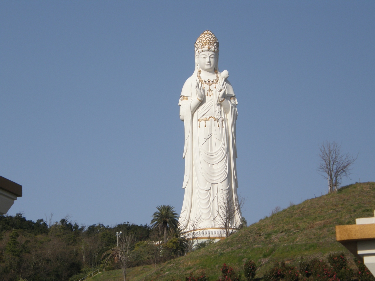 小豆島土庄港から銚子渓へレンタカーで向かっていたらたまたま見えた観音様。