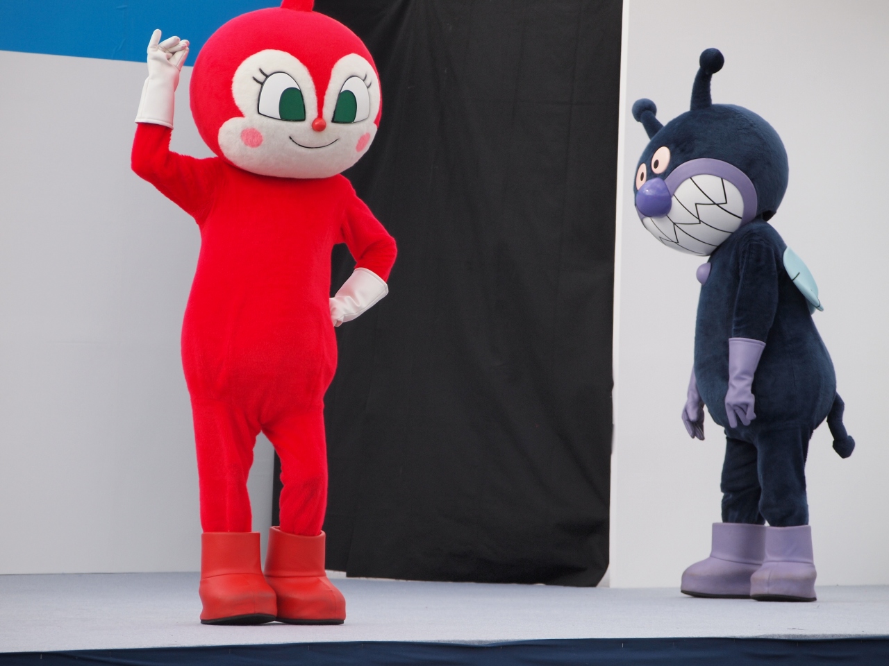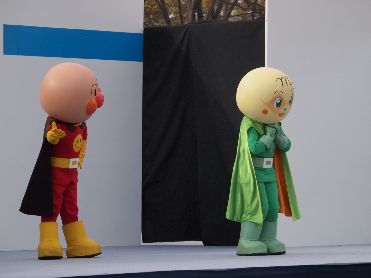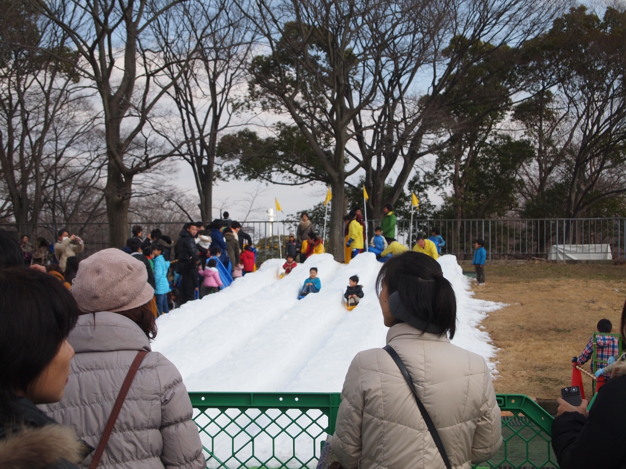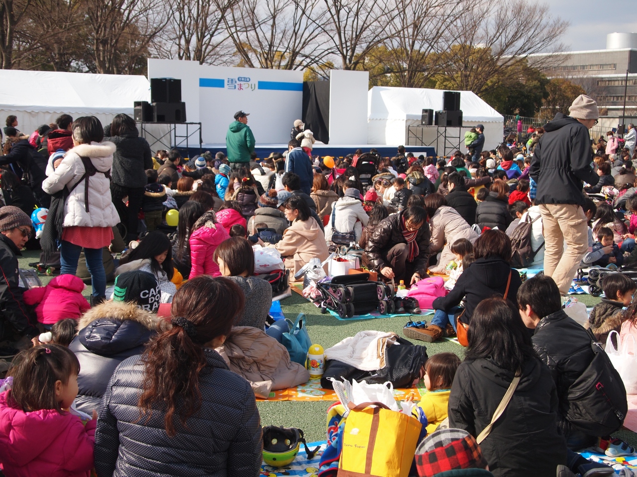 雪を持ち込んでの、そりすべりがあったり、ステージではアンパンマン・ショーがあったり。