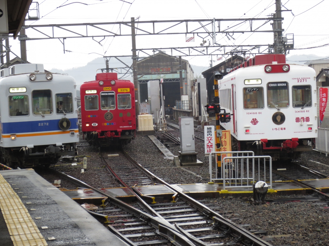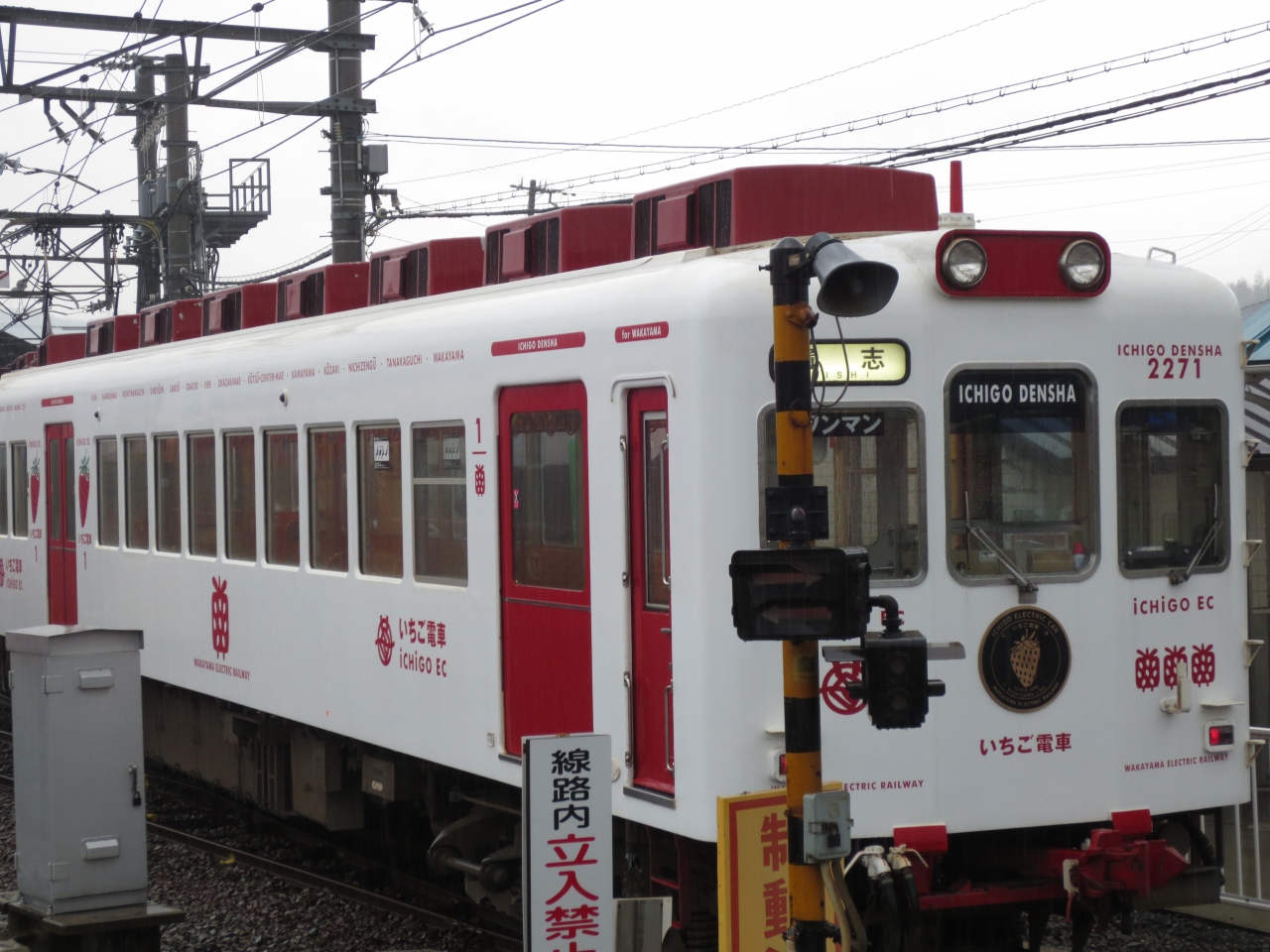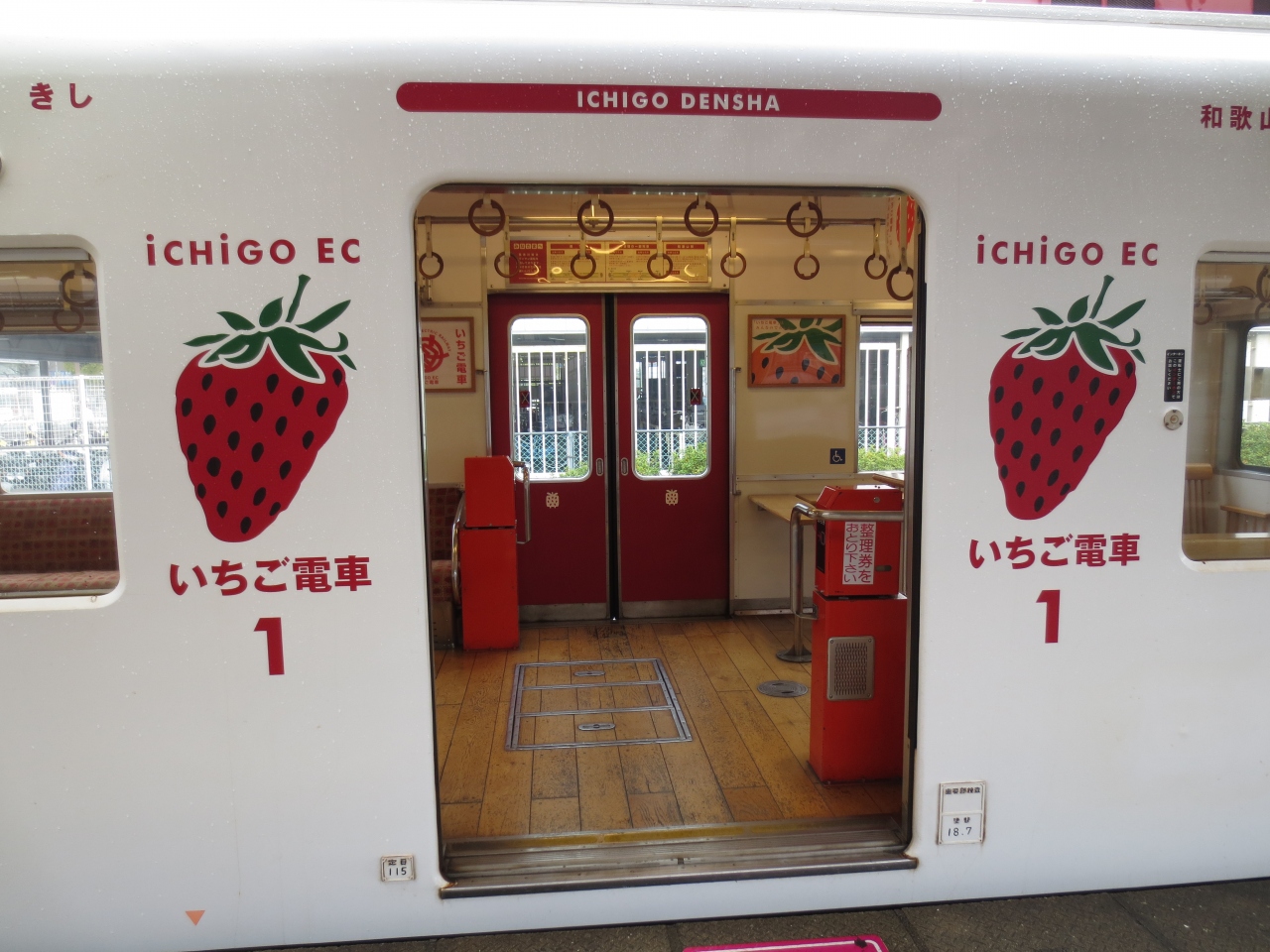JR和歌山駅の一角にローカル線わかやま電鉄貴志川線のホームがあります。いちご電車というものがあり、外側にイチゴマークがあり、内装はすべていちごというかわいい電車です。これに乗って伊太祁曽駅で降りると、わかやま電鉄のグッズがたくさん並べられています。駅長猫のグッズもあります。この駅から歩いてすぐのところに伊太祁曽神社があり必見です。