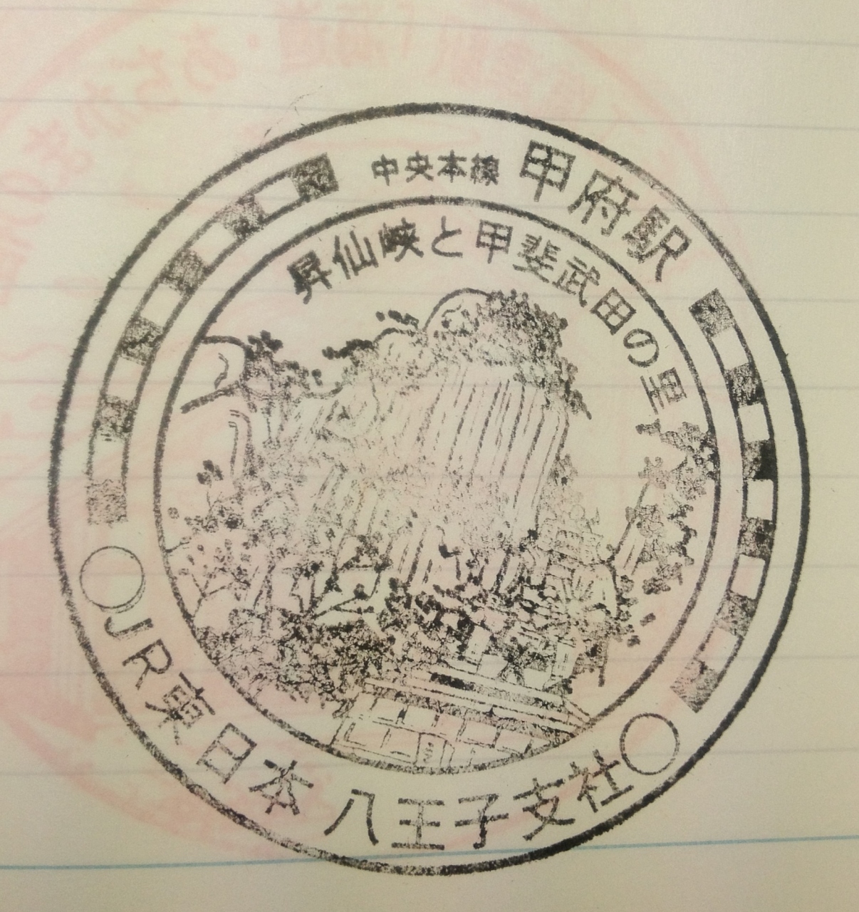 甲府駅のスタンプには、「昇仙峡と甲斐武田の里」と刻印されています。
