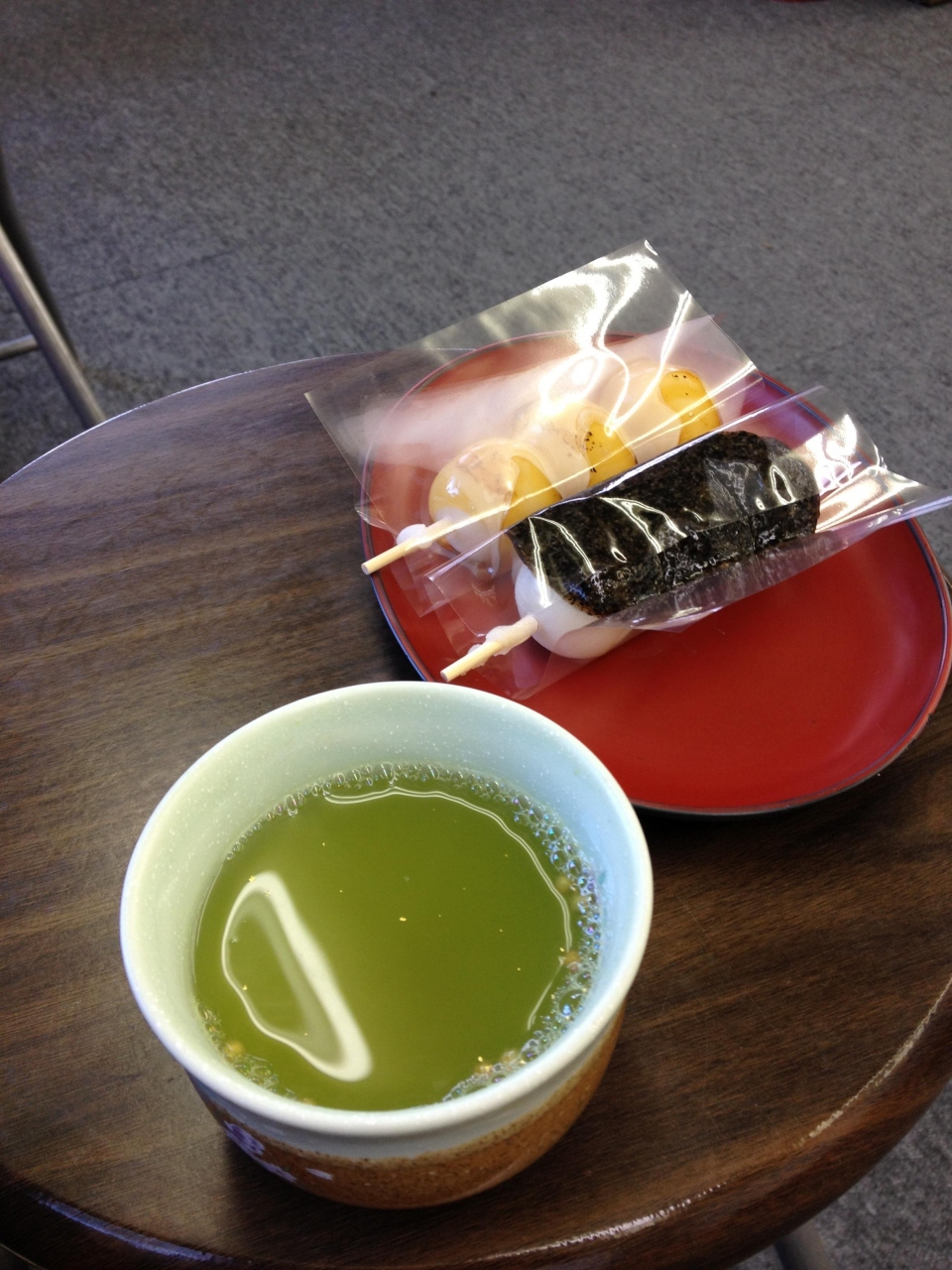 JTBのクーポンでお団子を頂きました。梅茶と一緒に。
