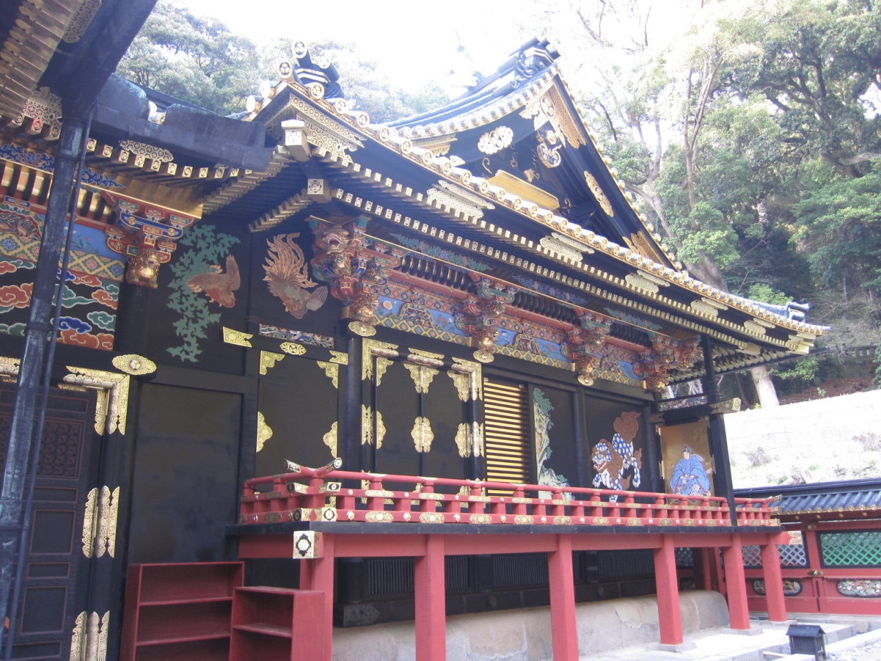 特に、社殿のきれいな黒い壁に色鮮やかな獅子などの絵や、柱や様々な彫刻は見事でした。