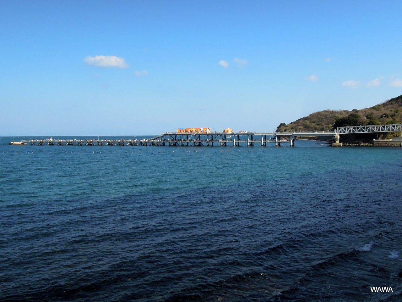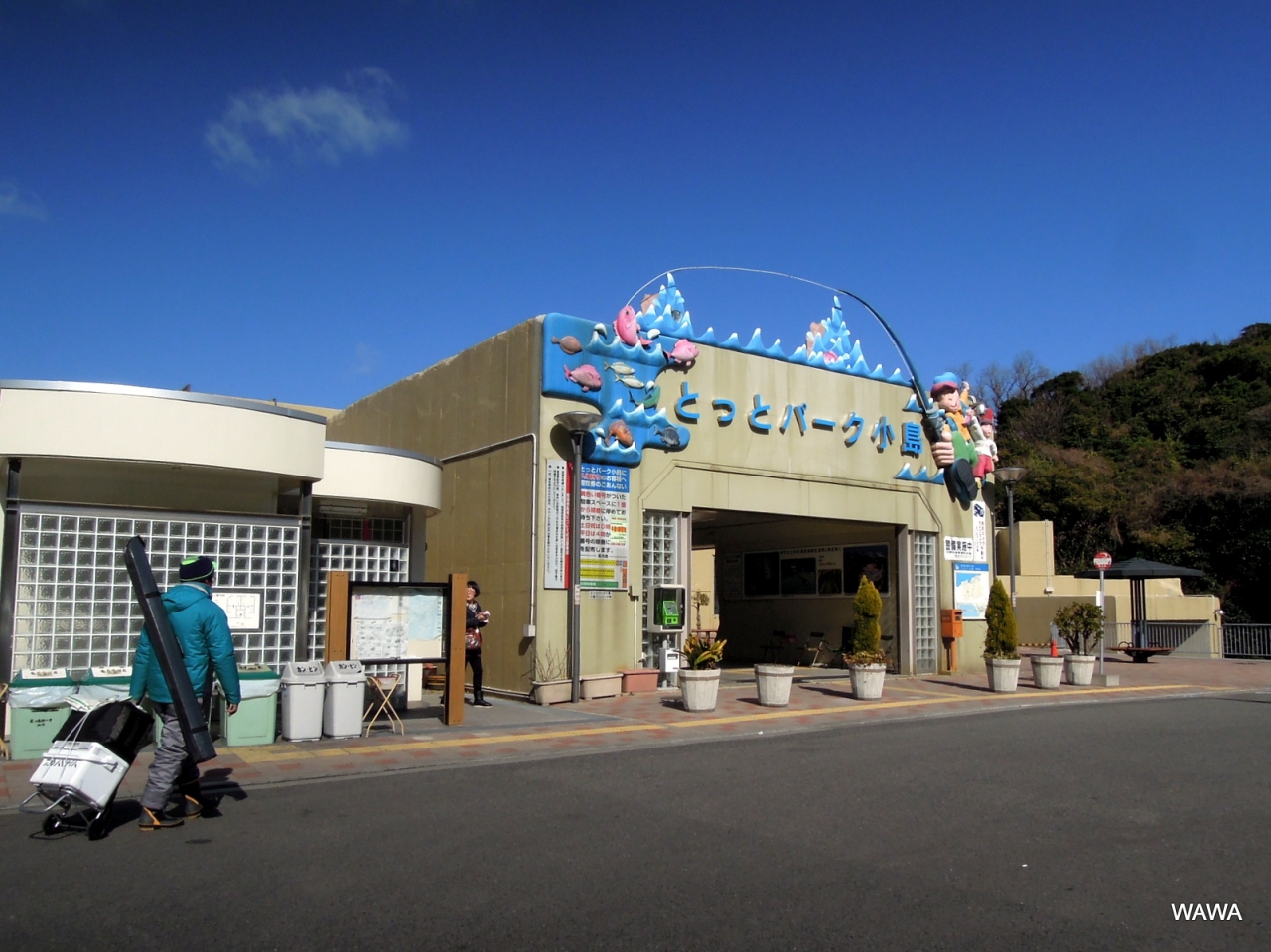 道の駅 とっとパーク小島には、大きく海に張り出した立派な釣桟橋(有料)があります。釣り場は3メートル以上の高さがあるので大物などには長い柄の付いたタモ網が必要ですが、周囲には漁礁が設置されるなど、冬でも早朝から整理券を配るほど人気があるようです。駐車場も釣客で満車がちで、道の駅としての機能は幾分麻痺しています。