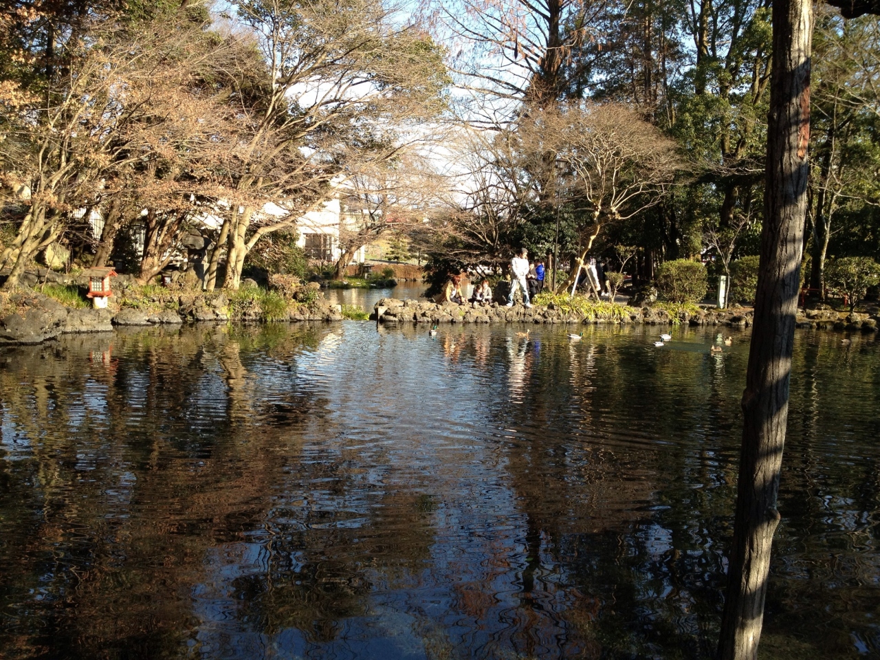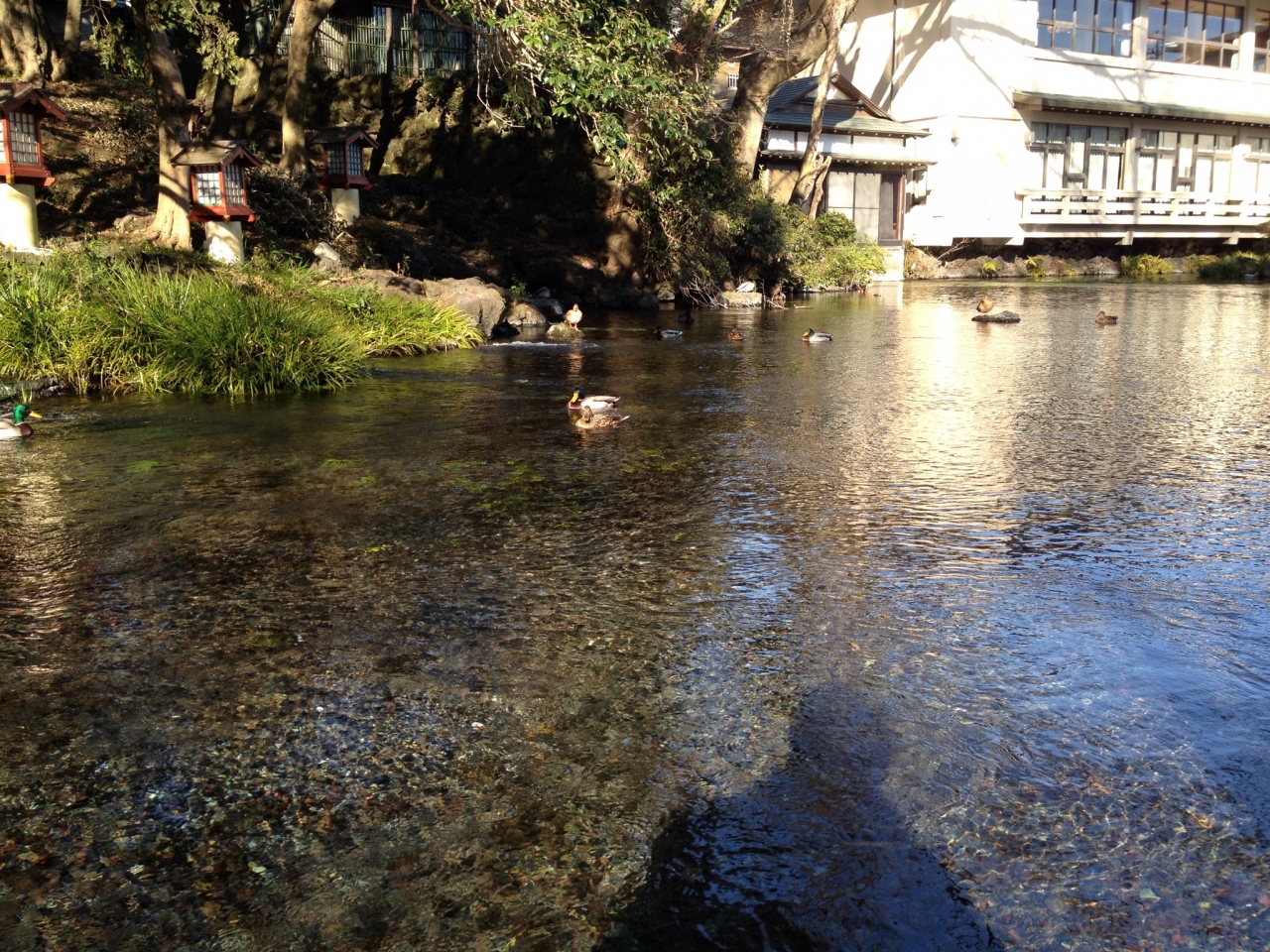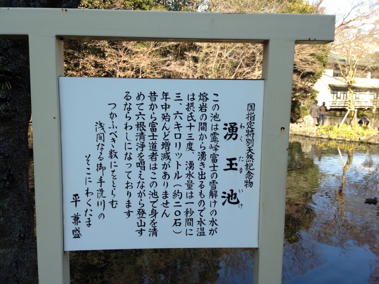 かつては富士登山者の禊の水だったそうですが、観光地化が進んだ現在は鯉や鱒が泳ぎ、鴨がのんびり水の上を泳いでいる綺麗な池。