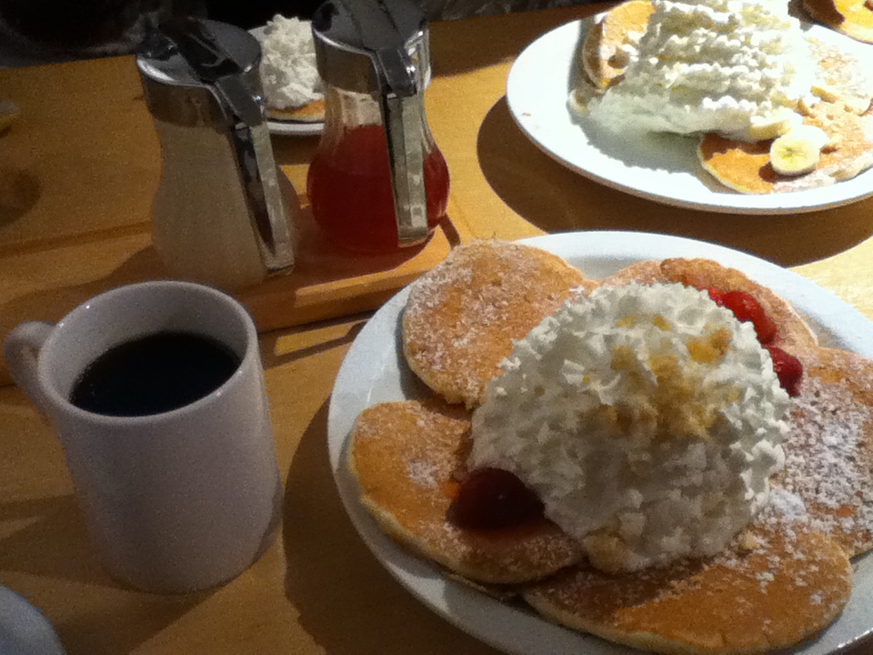 デザート系と食事系のパンケーキを頼んでシェアするのが良さ気です。