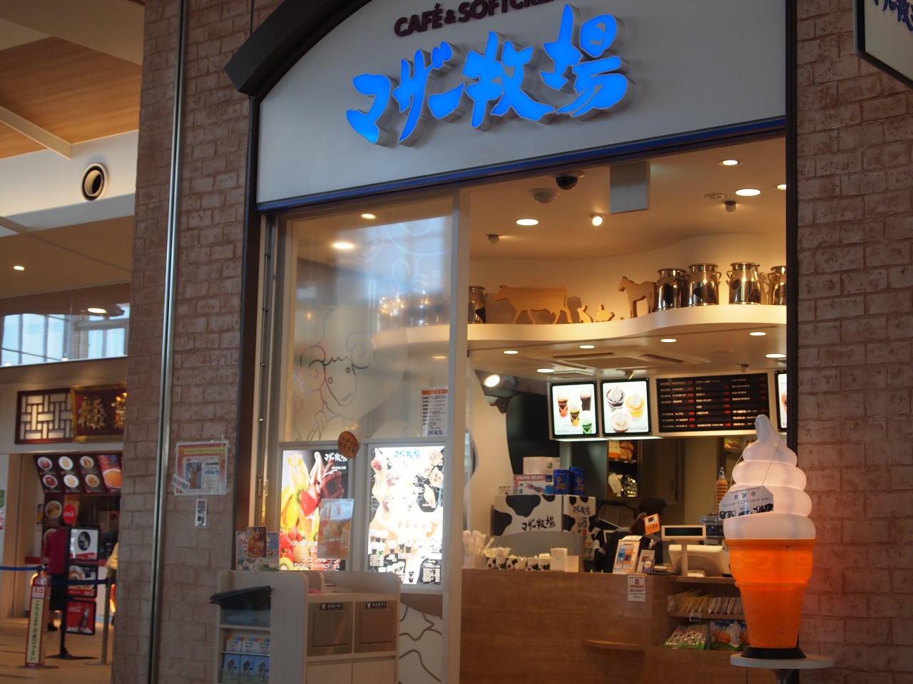 木更津のアウトレットにあるマザー牧場のお店。フードコートの中にある。夏に来た時は名物ソフトクリームを食べようと行列ができていたが、さすがに冬なので並ぶ人は見当たらない。ソフトクリームだけでなく、チーズや牛乳などの店頭販売も少ないがしている。